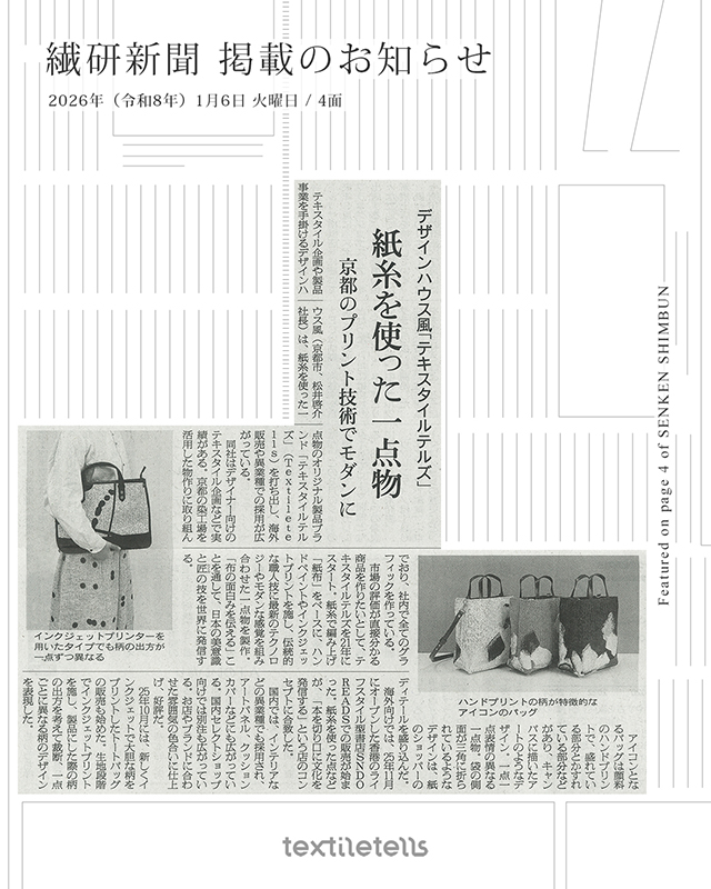 繊研新聞2026年1月6日付 にtextiletellsが掲載されました |